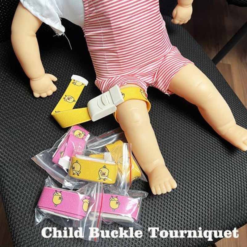 สายรัดหัวเข็มขัดสำหรับเด็ก ทำจากวัสดุที่อ่อนนุ่มและยืดหยุ่น เมื่อเปรียบเทียบกับสายรัดสำหรับผู้ใหญ่ สายรัดหัวเข็มขัดสำหรับเด็กมีขนาดให้พอดีกับแขนหรือขาของเด็ก ช่วยให้ควบคุมการตกเลือดได้อย่างแม่นยำโดยไม่ต้องออกแรงกดทับหลอดเลือดและผิวหนังของเด็กมากเกินไป